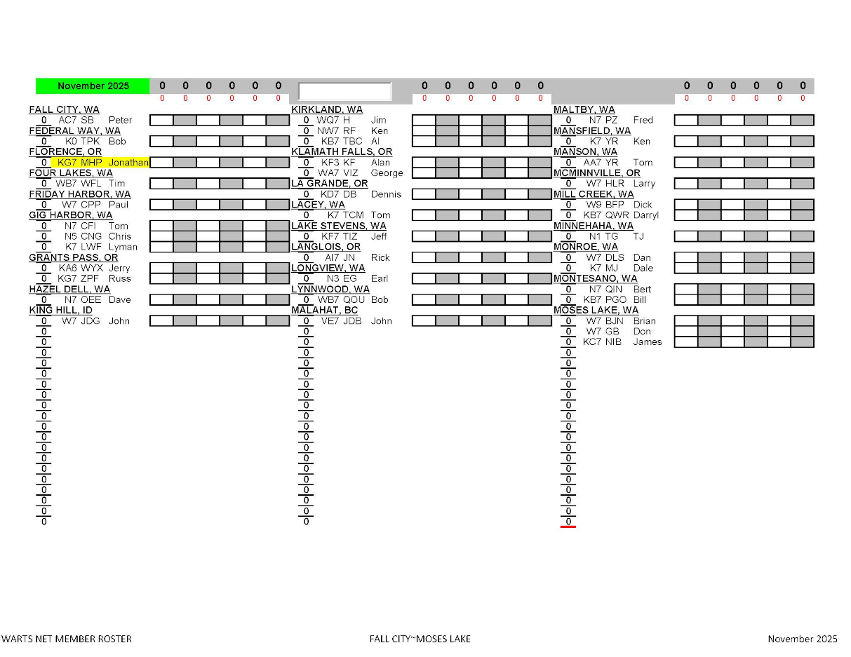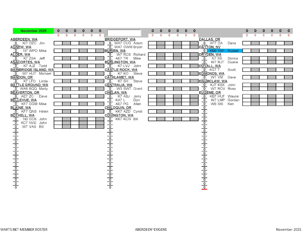 WARTS Net Roster